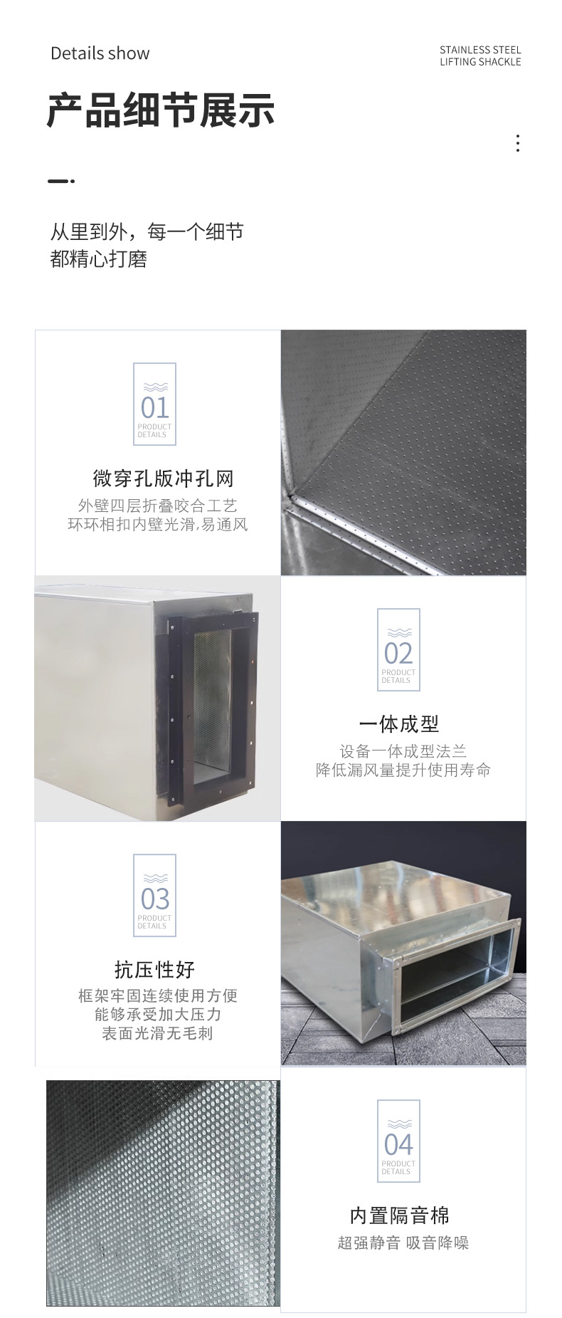 不僅如此,消聲靜壓箱采用優質材料打造,結構堅固耐用,適應多種復雜環境,安裝簡便靈活,可根據不同需求定制規格。無論是大型商業綜合體、數據中心,還是食品加工廠、制藥車間,它都能發揮關鍵作用,提升通風系統的整體性能。